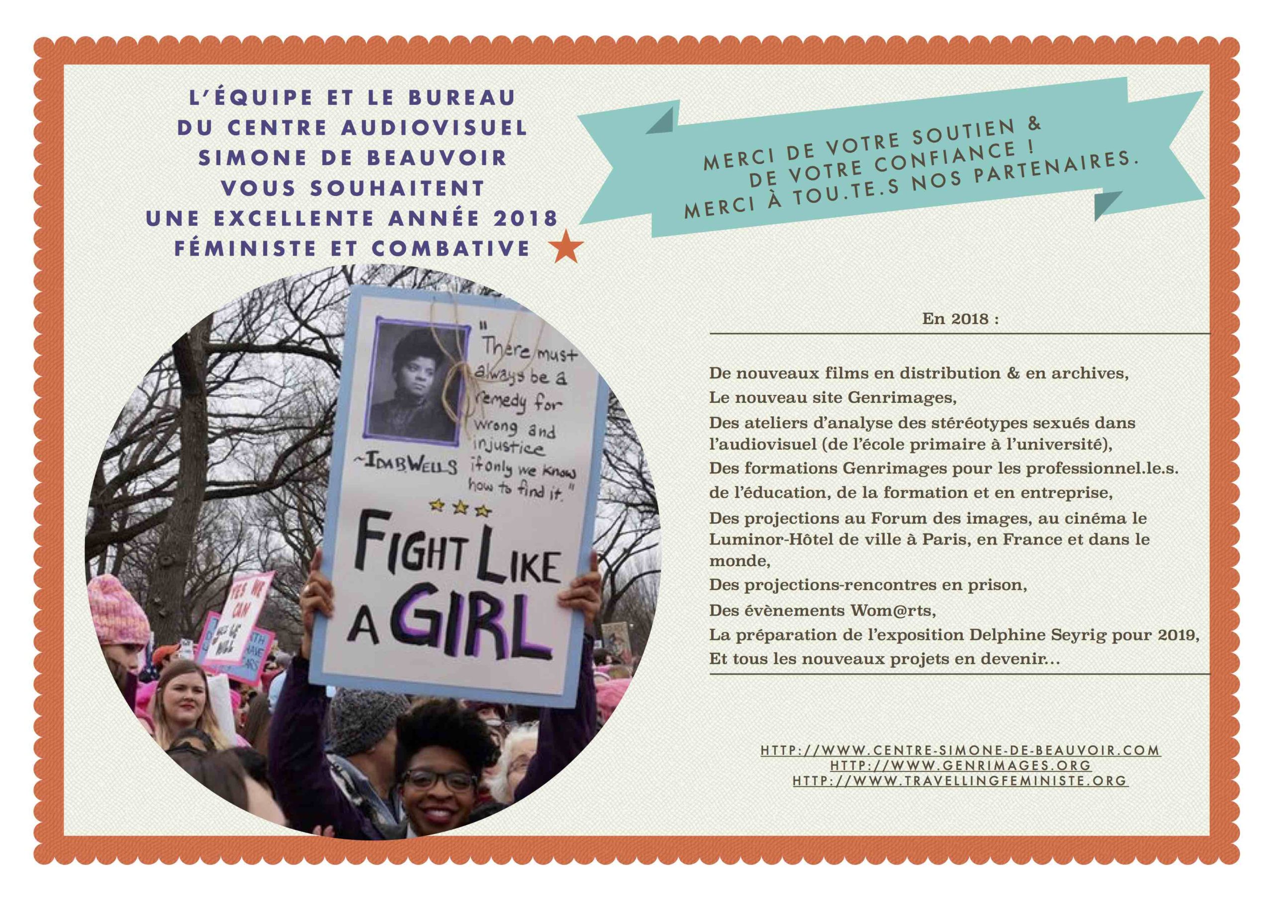 Tous nos meilleurs voeux pour une année 2018 féministe et combative. Article précédent Projection 2 films : Exotic World and the Burlesque Revival & Legends, the Living Art of Risqué Article suivant Projection de "Girasoles de Nicaragua" de Florence Jaugey